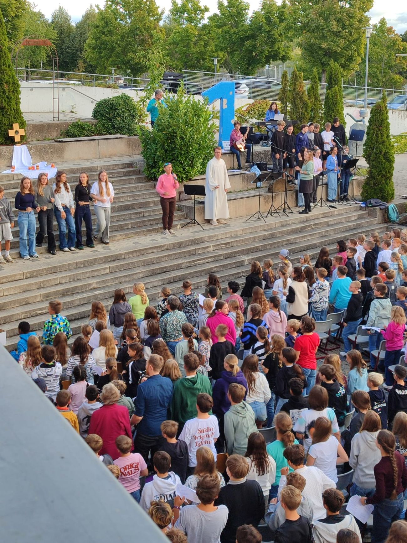 Am Montag, den 15.09.25 begann das neue Schuljahr mit unserem gemeinsamen Anfangsgottesdienst. Das Wetter spielte mit, sodass der Gottesdienst seit längerer Zeit endlich wieder im Schulhof stattfinden konnte.