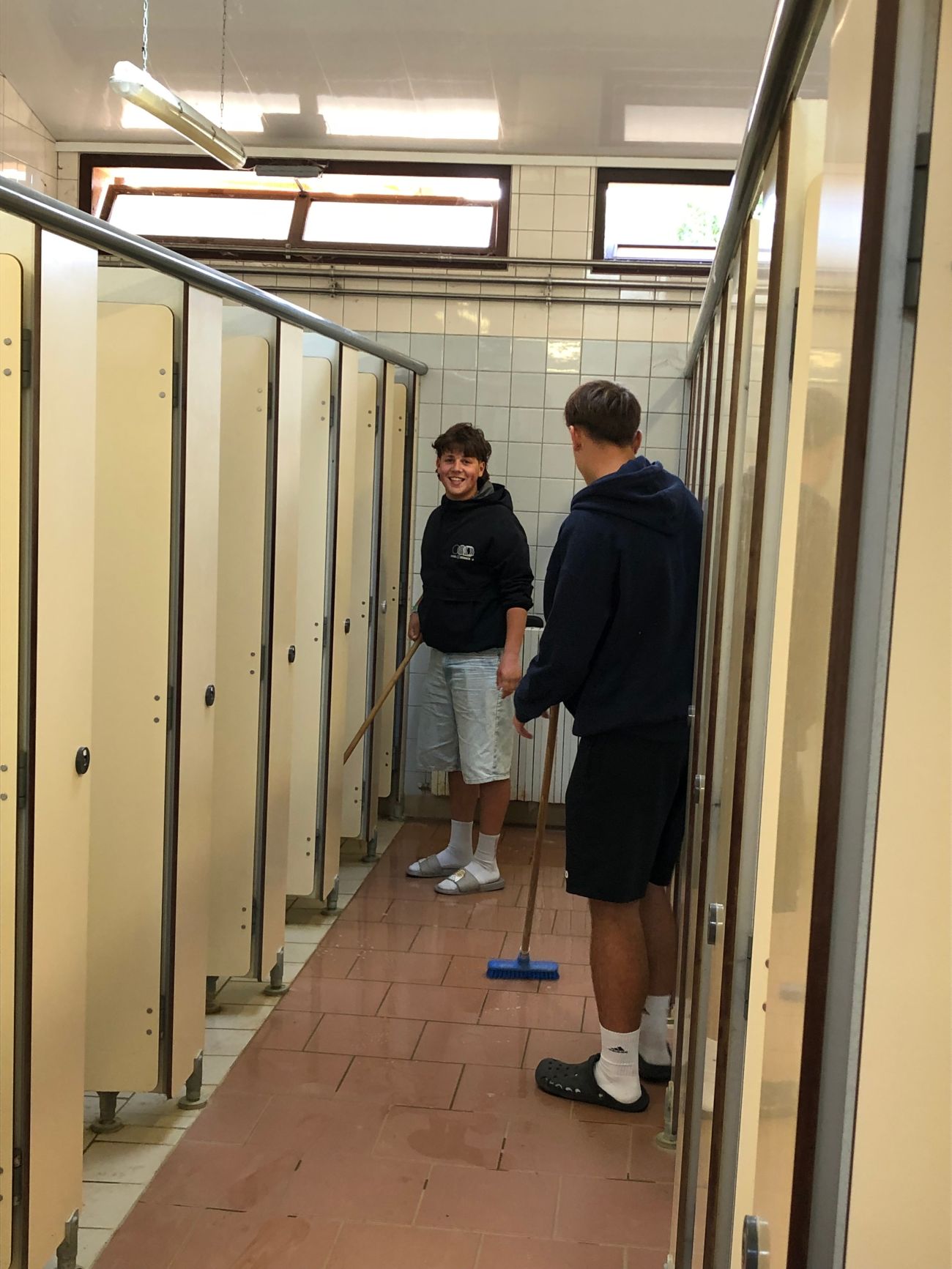 Um das Gelände und die Unterkünfte sauber zu halten, müssen alle mit anpacken. Daher trafen wir uns immer um 15 Uhr, um zu putzen. Als kleine Stärkung gab es danach Tee und Gebäck. Auch bei diesen Aktivitäten konnten wir neue Kontakte knüpfen.