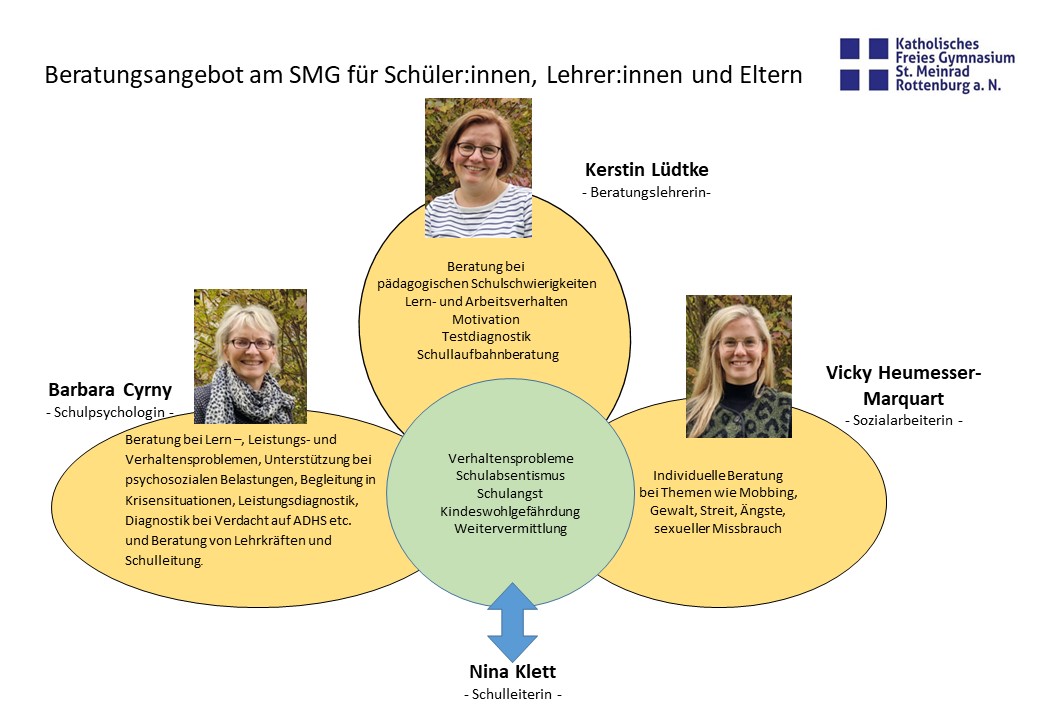 Erreichbar bin ich am besten unter cyrny@smg-cloud.de oder unter 07073-836558 (AB). Ich versuche Euch/Ihnen möglichst zeitnah einen Termin anzubieten, an dem wir uns an der Schule im Beratungsraum zu einem Gesprächtreffen können. Auf Wunsch ist es natürlich auch möglich, dass wir uns zuerst telefonisch austauschen, um dann gemeinsam zu überlegen, ob ein persönliches