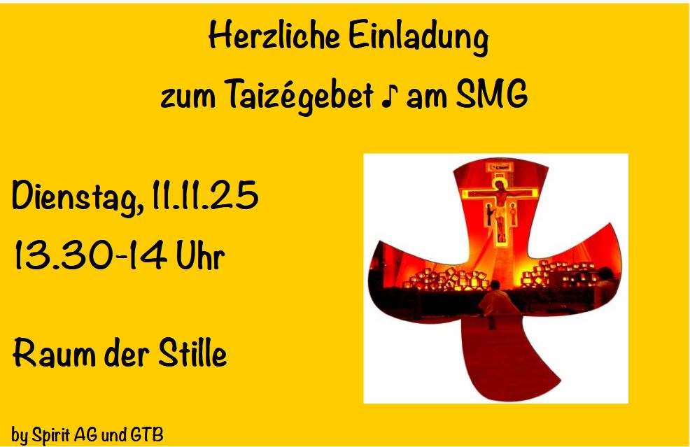 Am Dienstag, den 11. November 2025, laden die Spirit-AG und die GTB herzlich zu einem Taizé-Gebet ein.