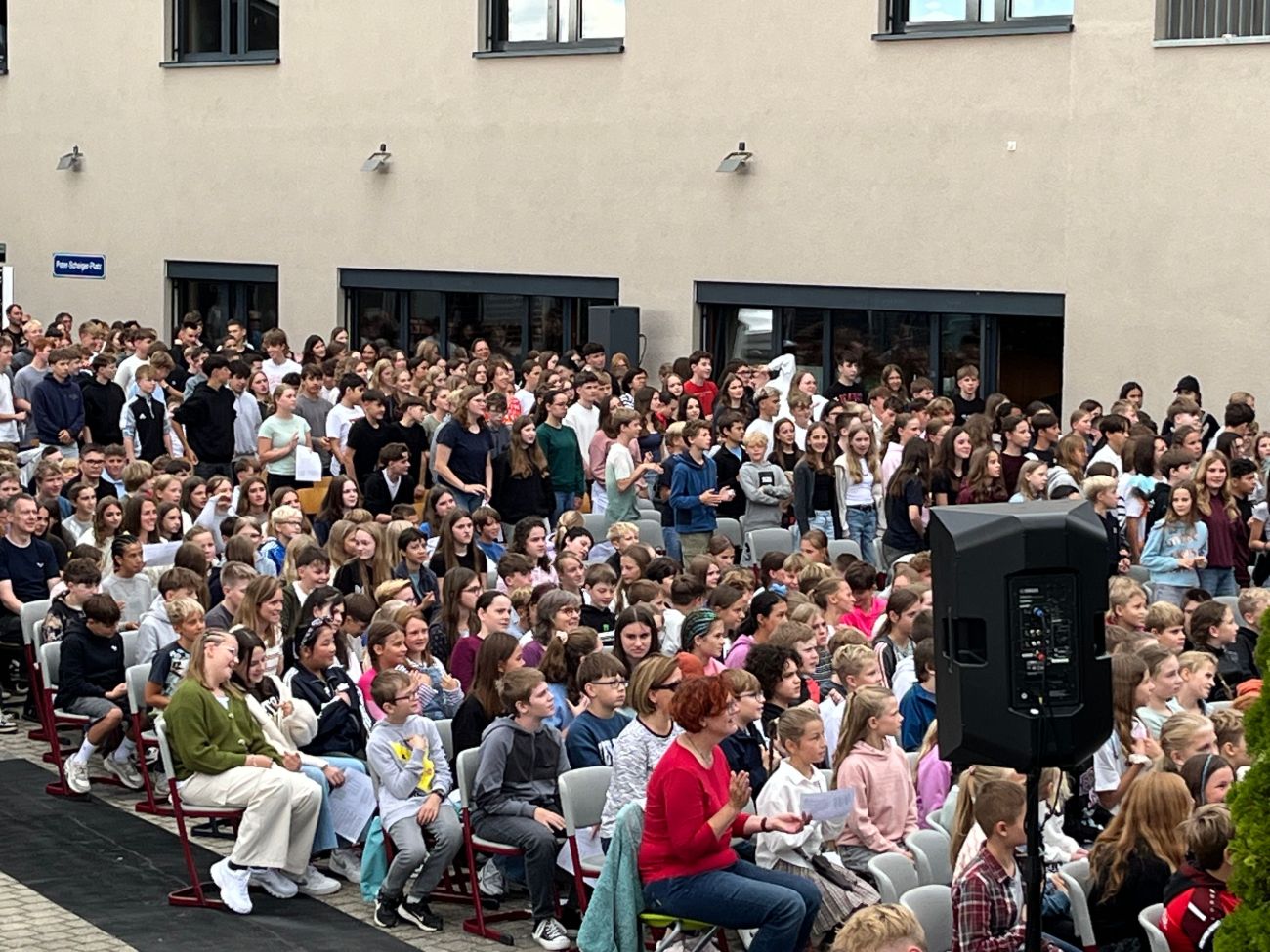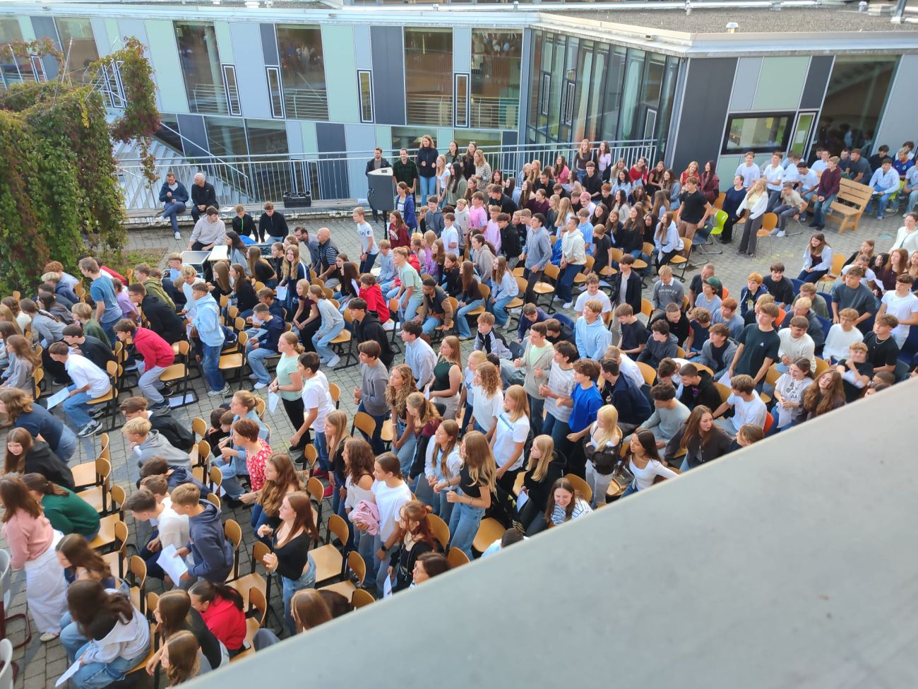 Am Montag, den 15.09.25 begann das neue Schuljahr mit unserem gemeinsamen Anfangsgottesdienst. Das Wetter spielte mit, sodass der Gottesdienst seit längerer Zeit endlich wieder im Schulhof stattfinden konnte.