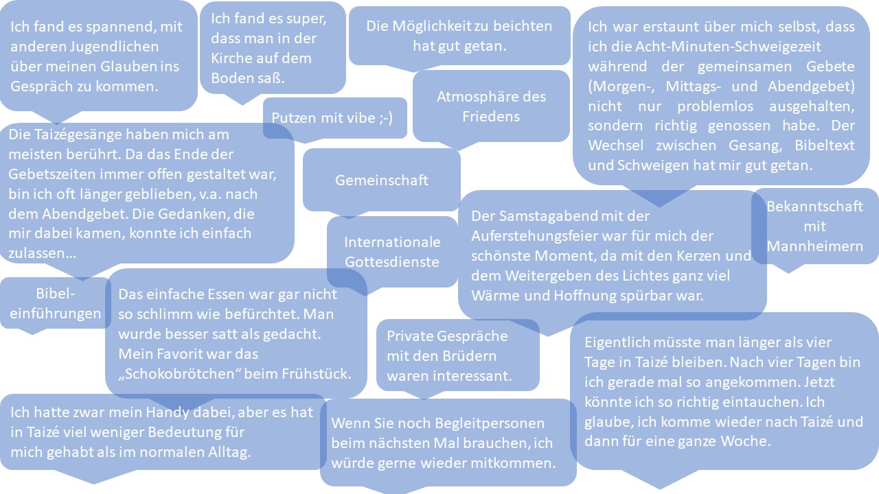 Alles in allem konnten wir aus Taizé vieles mitnehmen und haben neue und schöne Erfahrungen gemacht. Vor allem haben wir durch das einfache Leben in Taizé, den Alltag der Brüder eine neue Perspektive kennengelernt.